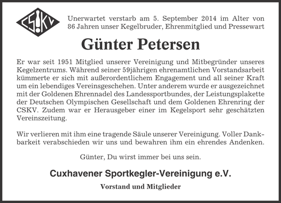 ( Cuxhavener Nachrichten vom 09.09. / 12.09.2014 )
