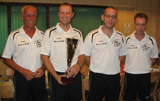 Der Klub Grün-Weiß hatte durch eine Auslosung seine beiden Mannschaften besetzt und so hieß diesmal der Sieger Grün-Weiß II, in der Besetzung Christine Sinram (786), Barbara Sepcke (734), Antje Sandrock-Semmler (772) und Sabine Kaminski (755.) Der SKC 2000 spielte mit Thorsten Schulz (765), Sönke Neumann (768), Hans-Peter Buschbeck (772) und Florian Graitz (774).