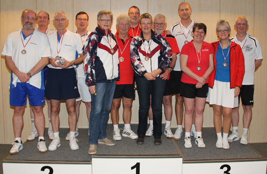 Hannelore v. Holten (744), Thomas Walter (745), Helga Okatz (751) und Francisco Martin-Troyano (755) holten mit insgesamt 2995 Holz nicht nur den erneuten Tagessieg, mit der optimalen Ausbeute von 24 Punkten sicherte sich das Team den Meistertitel 2015. Silber holte sich die Mannschaft von Blau Weiß, Helmut Rolfs (758), mit 2970 Holz und 18 Punkten vor der SG SKC 2000 / De Kegeldeerns / Doppeleiche, Johannes Rüsch (763) mit 13 Punkten. Mit einer tollen Mannschaftsleistung von 2985 Holz startete das Team von Gut Holz, Peter Boley (751), noch einen Angriff auf den Bronzeplatz und erzielte ebenfalls 13 Punkte, es fehlten allerdings einige Hölzer im Gesamtergebnis aller vier Spieltage. Rang fünf mit 10 Punkten in der Abschlusstabelle belegt die SG Kugelbake / Oldies mit Rolf Schütt (764) als Tagesbesten vor Nordsee-Minicar, 3 Punkte.