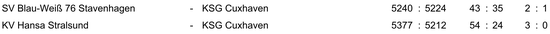 Bundesligist KSG Cuxhaven holt nur zwei Punkte am letzten Heimspielwochenende Mit zwei Siegen in den Spielen gegen Fehrbellin und Hannover wollten die Sportkegler der KSG Cuxhaven am letzten Wochenende...