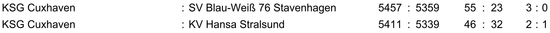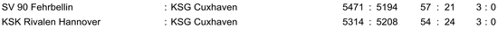Bundesligakegler vergeben Heimpunkt Am vergangenen Wochenende zeigte der Erstligaaufsteiger KSG Cuxhaven bei ihren Punktspielen auf eigenen Bahnen zwei unterschiedliche Leistungen. Nach einer guten Heimspielpremiere...