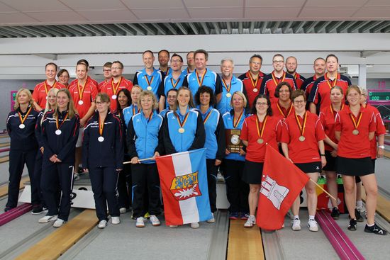 Die Berliner Herren wollten sich mit ihrem dritten Rang nicht zufrieden geben und zogen noch an den Niedersachsen vorbei. Spyra (934), Gilbert (917), Probst (926) und Buschbeck, ab Wurf 61 Kirchhoff (930), konnten sich Rang drei aber vor Brandenburg sichern. Die Schleswig-Holsteiner zeigten sich an diesem Wochenende in allerbester Spiellaune und setzten sich mit einem Schnitt von über 100 Holz pro Kegler ganz klar durch.