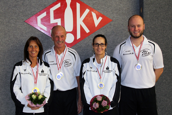 Am Sonnabend ging es auf den Bahnen im Kegelzentrum in die Vollen mit den Damen- und Herren-Doppeln sowie im Mixed. Dabei entwickelte sich weit hinter dem Führungsduo Christine Sinram / Anja Fürst, die unangefochten mit 945 Holz ihrer langen Erfolgsstatistik einen weiteren Titel hinzu fügten, ein spannender Kampf um die weiteren Medaillen. Diesen entschieden mit dem 120. und letzten Wurf, einer Neun, Antje Sandrock-Semmler / Silke Schulz glücklich für sich vor ihren Klubkameradinnen Katharina Sepcke / Christine Müller, die nach guten Leistungen dicht daran waren, für eine kleine Überraschung zu sorgen.