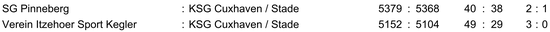 Cuxhaven / Stade holt nur einen Auswärtspunkt Die Zweitliga-Kegler der KSG Cuxhaven / Stade holten in Pinneberg und Itzehoe nur einen Punkt und fallen auf Platz vier in der Tabelle zurück. Das einzig...
