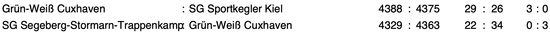 Das Heimspielwochenende lief für die Bundesliga-Sportkegler der KSG Cuxhaven / Stade durchwachsen.Nach einem überraschenden 3:0-Sieg gegen Union Oberschöneweide verlieren die KSG-Herren am Folgetag...