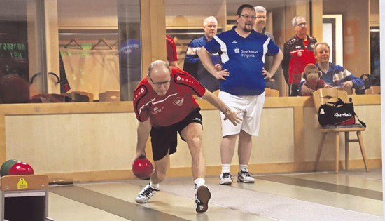 Die Schlussachse musste jetzt versuchen, wenigstens ein Holz ins Ziel zu retten. Doch es kam ganz anders. Christian Ziems (891) traf gleich den ersten Ansatz überhaupt nicht, während Dag Maibaum (885) gleich gut ins Spiel fand. Auch Torsten Möller (896) konnte sich überraschenderweise mit der Bahnanlage anfreunden und schlug bis auf den Tagesbesten Torsten Hochmann (900) alle Heimspieler. Seinen direkten Gegenspieler Florian Kutz (886) hatte er jederzeit im Griff.