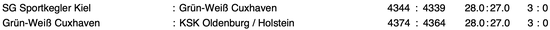 Sportkegel-Damen mit Sieg und Niederlage Die Sportkegel-Bundesliga-Damen von Grün-Weiß Cuxhaven spielten in den letzten beiden Auswärtsspielen in Kiel 3:3. Damit liegen sie jetzt drei Punkte hinter...