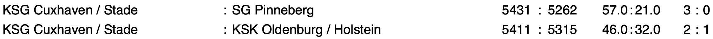 Die KSG Cuxhaven / Stade beendete das Punktspiel-Wochenende mit sicheren 6:0 Punkten gegen direkte Konkurrenten. Die Bundesliga-Sportkegler gewannen im Kegelzentrum gegen den SV Binde und SVL Seedorf jeweils...
