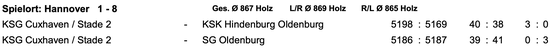 Die Sportkegler der KSG Cuxhaven / Stade II haben trotz Niederlagen gegen KSG Wolfenbüttel und Rivalen Hannover II in der Verbandsoberliga den Klassenerhalt geschafft. (1) Die Startachse mit Sönke Neumann...