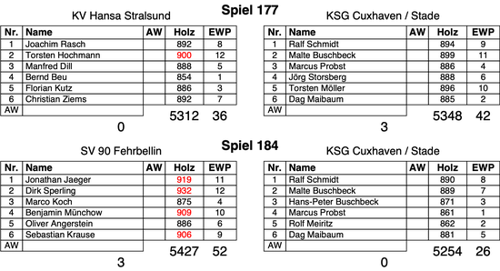 Die KSG Cuxhaven / Stade kommt in der 1. Bundesliga im Sportkegeln zu einem 3:0 in Stralsund // 0:3 gegen Fehrbellin