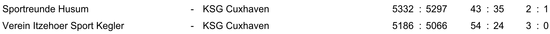 Die Sportkegler der KSG Cuxhaven hatten sich für ihren Saisonstart sicherlich eine bessere Bilanz als 1:5 Punkte aus den Auswärtspartien am Wochenende in Husum und Itzehoe gewünscht, vor Allem, weil...