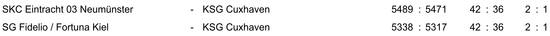 KSG-Kegler im Endspurt Am kommenden Wochenende sind die Herrenteams der KSG Cuxhaven in dieser Saison zum letzten Mal im Einsatz. In Bremen kommt es zu der Begegnung Bremervörde I gegen die KSG II. Wenn...