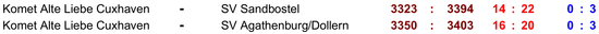 In der Sportkegeln-Bezirksklasse der Herren spielte Komet Alte Liebe am ersten Spieltag der neuen Saison gegen den SV Sandborstel und Agathenburg / Dollern. Die Cuxhavener mussten zwei deftige Niederlagen...