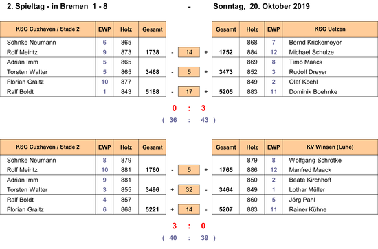 Die Verbandsoberligakegler der KSG Cuxhaven / Stade II zeigen auch am zweiten Spieltag nur durchwachsene Leistungen und mussten am Sonntag in Bremen nach einer Niederlage gegen Uelzen auch noch um die drei Punkte gegen Winsen zittern.