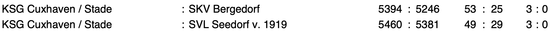 KSG Cuxhaven / Stade landet zwei Heimsiege gegen Bergedorf und Seedorf Die Sportkegel-Herren der KSG Cuxhaven / Stade landeten in der 1. Bundesliga zwei Heimsiege gegen SKV Bergedorf und SVL Seedorf. Am...