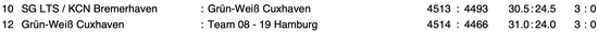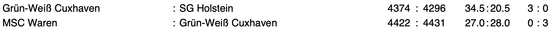 Auch die Damen von Grün-Weiß Cuxhaven absolvierten ihren ersten Punktspieltag. In Celle gab es zunächst eine 0:3-Niederlage (4493:4513) gegen SG LTS / KCN Bremerhaven. Katharina Sepcke (909) und Anja...
