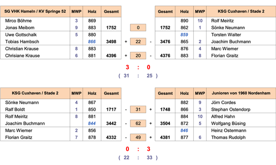 So ging das Spiel mit deutlichen 49 Holz an Nordenham. Enttäuscht ging es aus Winsen zurück an die Nordsee und die Elbe.